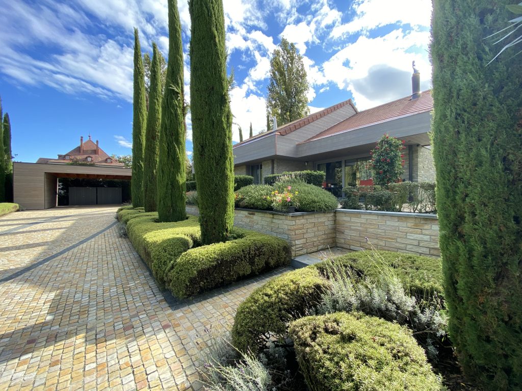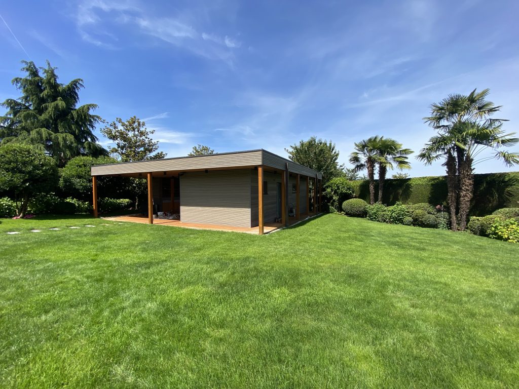 Pour la villa, un bardage bord à bord aux lames généreuses apporte à la fois douceur et caractère à l’architecture. Pour le garage et la pool house, un bardage à l’esthétique du claire-voie, a été privilégié afin d’apporter légèreté et modernité aux volumes.